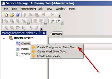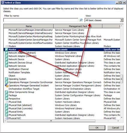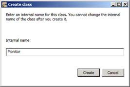 Create a new Configuration Item Class and specify a name for the new Class. In this example I create a new Class for managing Monitor-Objects.