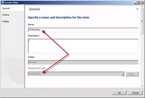 Next, create a new view. The view is automatically stored in the same Management Pack as the folder.