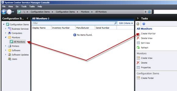 Now it’s time to create new Objects. Use the “Create Monitor”-Task in the Actions Pane.