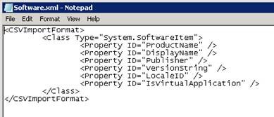 The XML file then looks something like this. The Class-ID in this example is “System.SoftwareItem” and the different attribute-IDs are listed in the correct order (compared to the Data file).