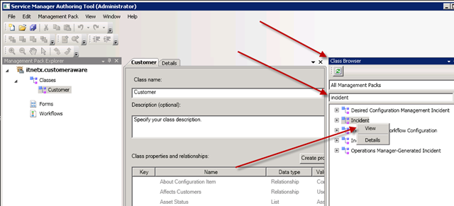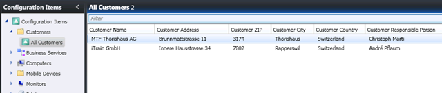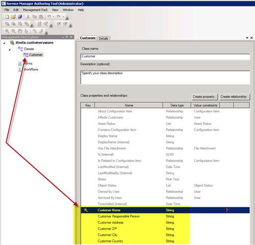 First of all, a new Class is needed that will hold company objects. I create a new Management Pack, call the class “Customer” and add several attributes like Name, Address and responsible person. You can find details on how to create new classes in this blogpost.