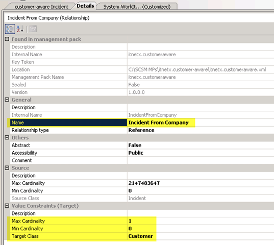 After some cosmetic customization, the Management Pack is ready for Import. To create some customer/company objects, a new view has to be defined first. This blogpost gives you more details about creating views. Now, when an Incident is created (or an existing one is opened), the Customer field is visible and can be filled with a company object.