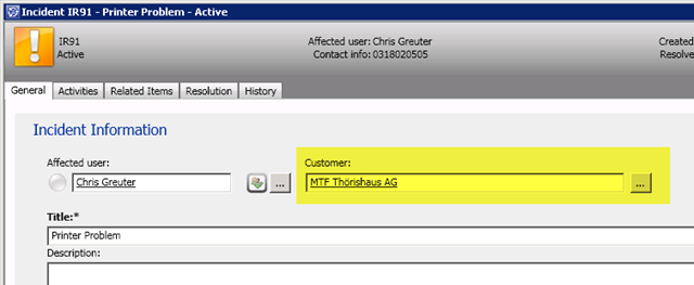 That’s a very easy but effective way to make Service Manager customer-aware. Of course, this is just the customization for Incidents, but you can do the (almost) same thing to Problems, Change Requests or Activities. Have fun trying out …