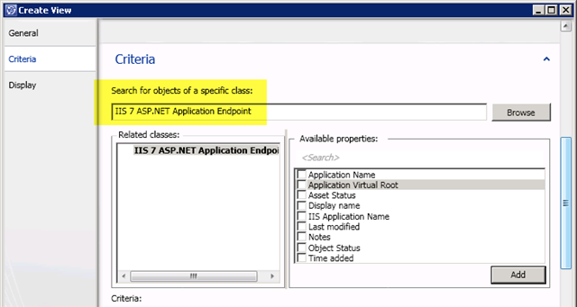 After a successful import, you have to create a view to display objects of the desired class. Because we just imported the IIS7 Management Pack, the needed class can be used to create the view.