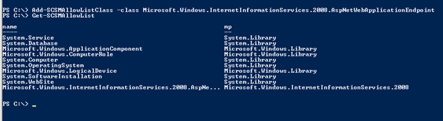Now switch back to the Powershell Console on the Service Manager Server and add the class name to the filter by using the cmdlet “add-scsmallowlistclass”.