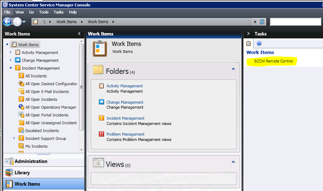 Tasks can be used to start different actions directly from the Service Manager Console without leaving the Console. This indeed makes sense because you can save a lot of time because you do not have to switch between multiple consoles and your desktop. Out of the box you will find a bunch of tasks that are available, but it could make sense to add your own tasks. One task that I’m using a lot is th ability to start the SCCM Remote Control Client directly from the Service Manager Console to connect to other Systems – especially when the Remote Desktop Connection can not be used (Client Computers …).