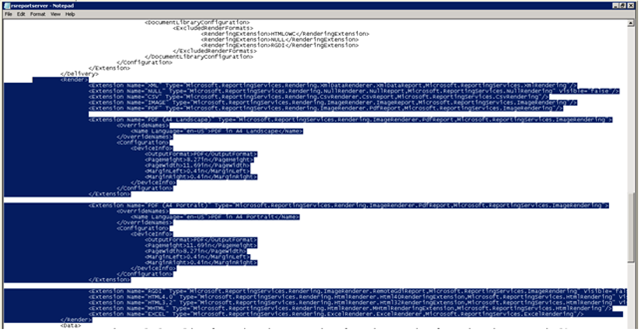 <Extension Name=”PDF (A4 Portrait)” Type=”Microsoft.ReportingServices.Rendering.ImageRenderer.PDFRenderer,Microsoft.ReportingServices.ImageRendering”>