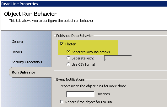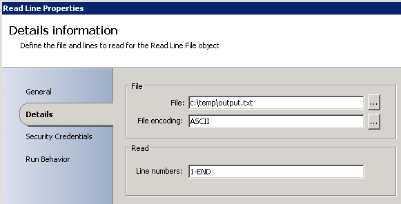 With the next activity we are going to read back the information that was written to the temporary file before. It’s important to flatten the results with line breaks.