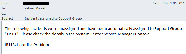 Now when testing the workflow, all unassigned Incidents will automatically become assigned. The notification mail will inform the related persons about the task.