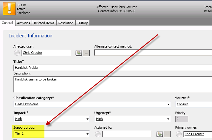 Now check the settings on the Incident. Believe it or not, the Support Group attribute was empty before.
