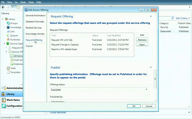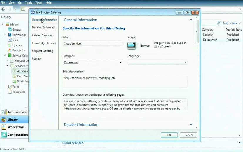 First, we need to build the Service Catalog with our Offerings. To do that, one or more Service Offering needs to be created and filled up with detailed information, icons, help articles and more.