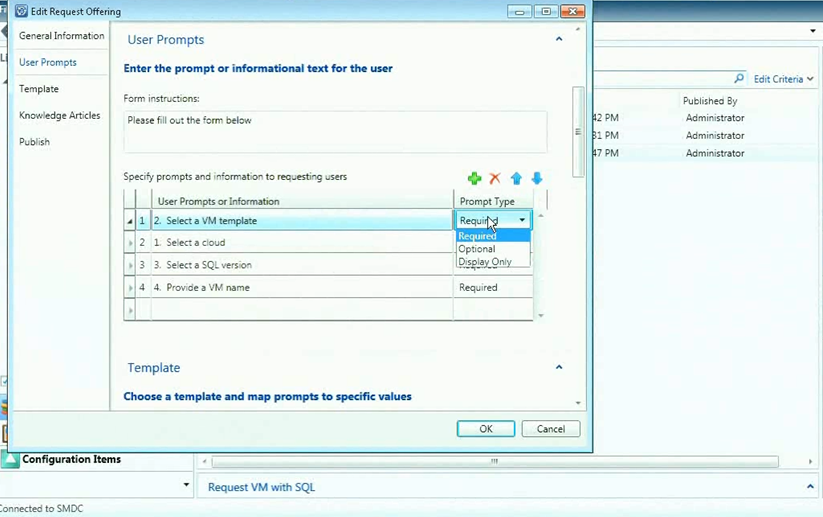 Within the Service Offering we now need to create the detailed Request Offerings. Most of the Service Offerings will require the user to input date when requesting the offering. Therefore we can add several questions that are either marked as required or optional. Based on these questions, a dynamically generated form will be presented to the users that are requesting offerings.