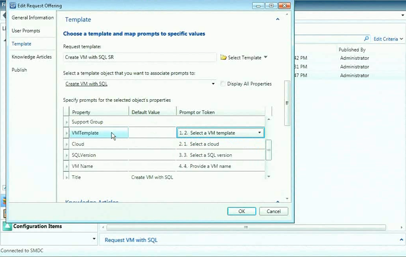 Now we can map the user questions to attributes of a Runbook Activity (Runbooks can be imported to the CMDB from System Center Orchestrator by using a connector). This is important because the user input will be needed to trigger the Runbook.