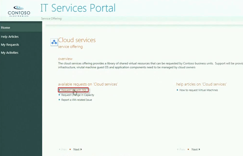 Now as everything is prepared for the consumers, let’s check the Self Service Portal. The configured Service Offerings are visible to the users, based on their User Roles.