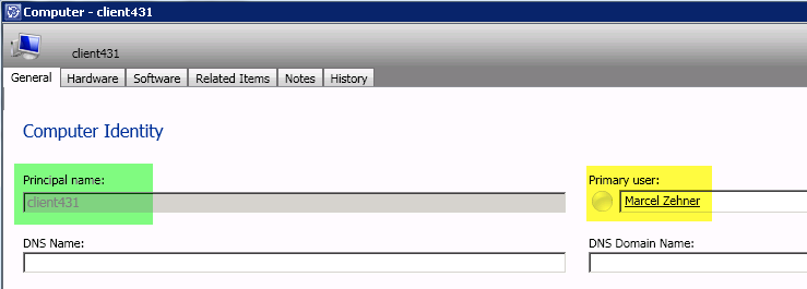 Now start the import process using the Service Manager Console. If the import was successful, the new computer object is created and the Primary User is specified.