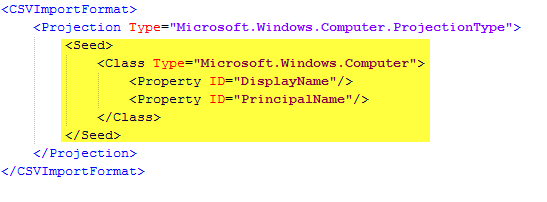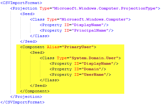 So based on that information you are able to build the XML-file for the import. But for now, we only defined the properties of the computer class (the seed class). Because we also want to configure the Primary User attribute, we need to add some more fields to the XML-file that we can use to identify a user object.