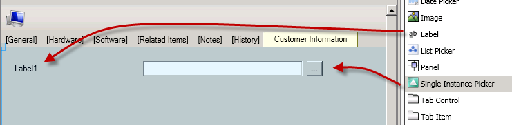 4. Switch over to the new tab, add a label and a single instance picker control.