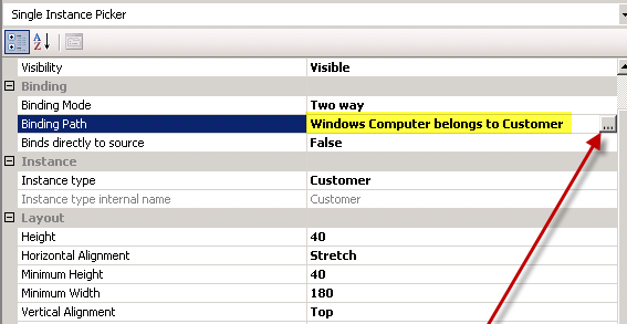 6. Edit the picker to change the data binding to the relationship property “WindowsComputerBelongsToCustomer”.