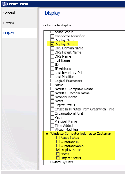 After successfully creating the view, I create a second view that shows all Windows Computers that are already assigned to a customer. The only thing that is different from the first view is the criteria.