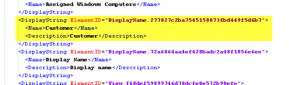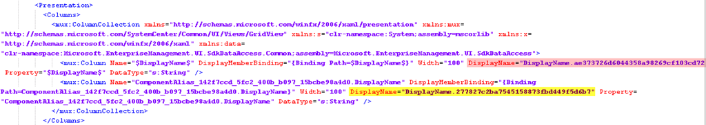For the finish I want to do some cosmetics because both column names in the two views are “Display Name” which can be confusing. This can be changed directly in XML, so I export the Management Pack and search the view.
