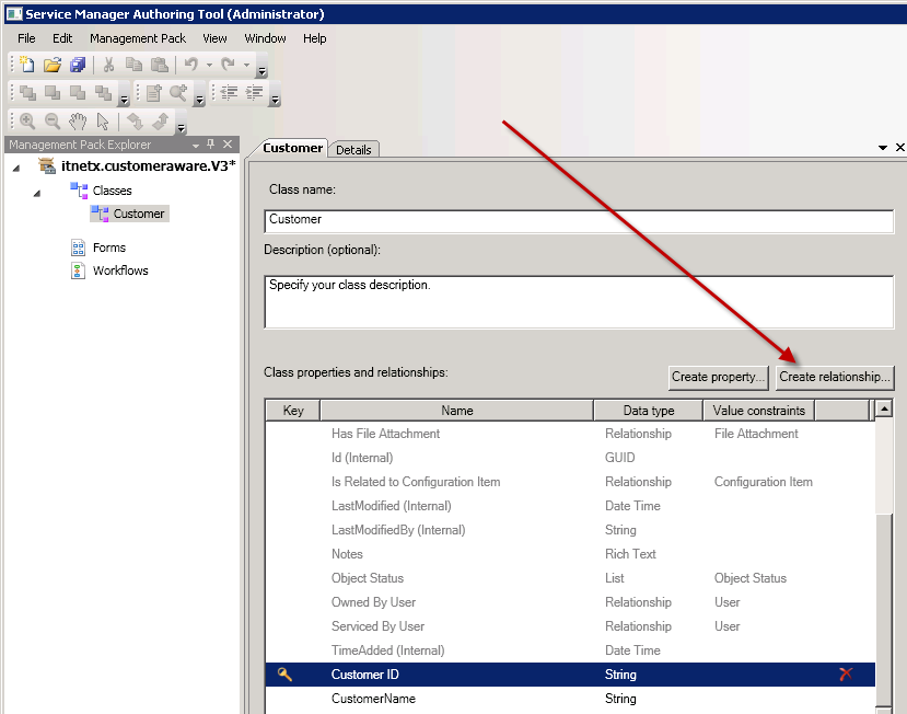 Now, I have to create a new Relationship between the Customer Class and the Windows Computer class because I want to assign the Windows Computers to customers.