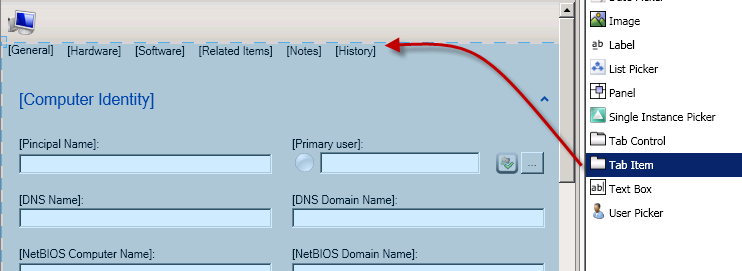 Now, as I am able to change the Computer form, I have to put an Instance Picker to the form. I do this by adding an additional tab to the form and then place the control there. This is the easiest way to go because I don’t have to deal a lot with formating. Of course, it’s also possible to place the picker somewhere else.