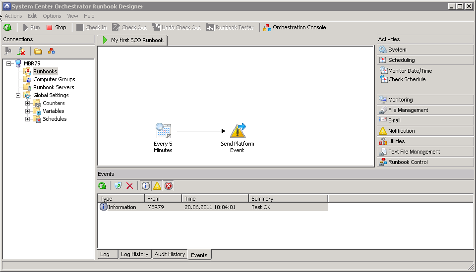 The next Release of Service Manager (SCSM 2012) will be available around end 2011. To drive automation to the next level, SCSM 2012 will contain a connector to System Center Orchestrator 2012 (today known as “Microsoft Opalis”) that allows us to import Runbooks (today known as “Workflows” or “Policies”) into the CMDB. The cool thing about that is, that these Runbooks can later be used as Activities within Service Requests or Change Requests to trigger Orchestrator Runbooks (push trigger). That means, that we will be able to trigger Runbooks to automate our IT Processes directly from the Business Services which really brings Datacenter Automation to the next level! In this blog post, I will give a short overview of SCO Beta 1 that was released some days ago.