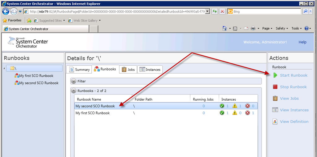 | SCO Orchestrator Console | Web-based console to monitor, start and stop runbooks |