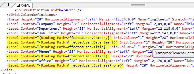 <Label Content=”{Binding Path=AffectedUser.Company}” …