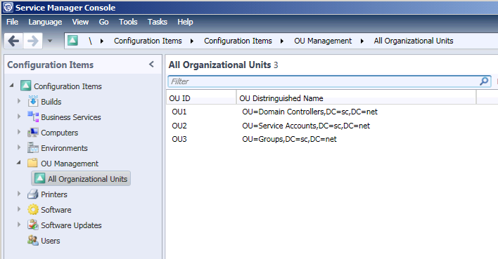 One exciting thing I demonstrated in the 60 Minutes Live Demo was how to use System Center Orchestrator to bring any kind of information from your environment to the Service Manager CMDB. In this post I will go through the different steps and will show how to read information from Active Directory (in this example “Organizational Units”) and bring the results to the CMDB (as Configuration Items). You can of course adapt the procedure in this post to bring any kind of information to the CMDB in a very easy way.
