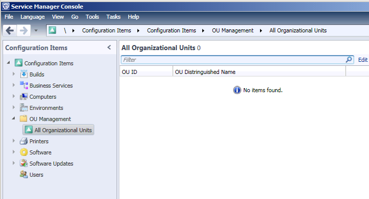 You could now start creating OU CIs manually, but that’s of course not what we want. Now comes the fun part …