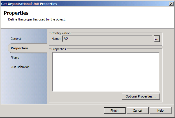 The second “Get Organizational Unit” activity comes from the Active Directory Integration Pack and is used to read all OUs from ADDS. I use no special criteria here because I want to read information from all OUs.
