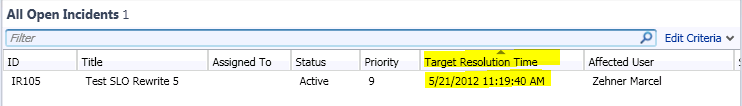 With this field populated you are now more flexible to work with the target resolution time, e.g. to display that information in the regular incident views or when somehow extracting this information out of the database.