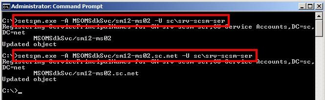 - setspn.exe –A MSOMSdkSvc/ServernameNetBIOS –U Domain\ServiceAccount