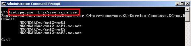 I finally tried setspn.exe –Luphs/svc_scsm and got this which is obviously wrong:
