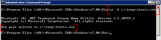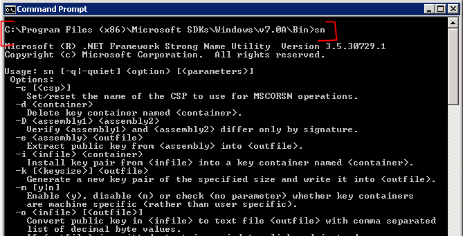 Wow, that a lot of stuff! So we will focus on the important stuff. First let’s create a new key pair –> sn.exe –k filename.snk