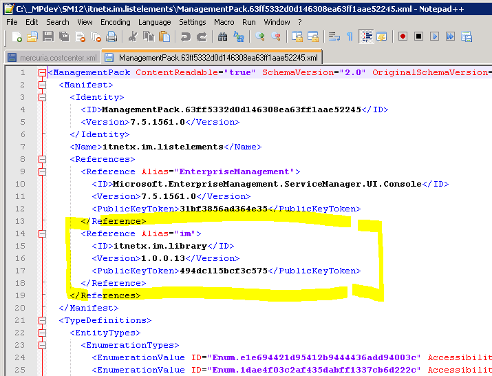 So how can we find out the Public Key Token of a referenced MP? The easiest way is to use the key pair that was used to seal the MP. From this key pair you can extract the Public Key and then calculate the Public Key Token. For this step you need sn.exe again –> sn.exe filename.snk filenamepublickey.snk