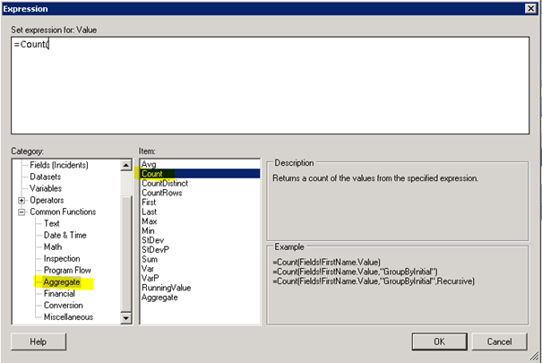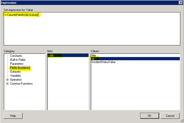 You can also add more information if needed. In this example I want to have the total count of incidents of every status. So I add a column and configure an expression in the light blue (grouped) field.