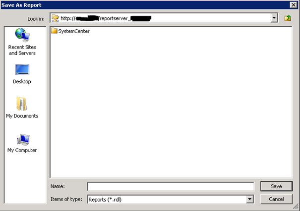 When the report is ready, it can be deployed to make it available to others. When saving the report you can choose to save it as a file or directly on a SQL Reporting Services server. I select the SSRS option with the correct URL to save the report to the same location where the other Service Manager reports are living.