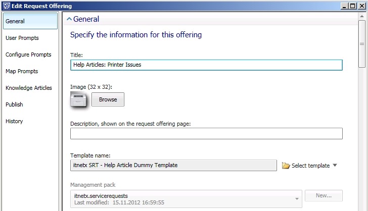 Because we are using Request Offerings, we will need a Service Request Template. This is only used as a “dummy”, so you dont have to configure the template.