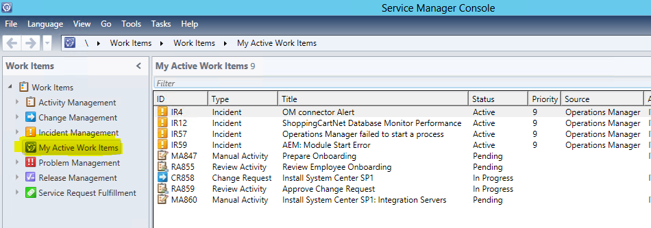 When you support multiple ITIL Processes with Service Manager, your Analysts may complain that they have to constantly navigate in the console to see the objects they are responsible for or they have to work with. This is indeed a pain and the result could be that analysts are missing important Work Items and Requests can not be fulfilled within the defined time frames. The answer for that problem is to have a single view that shows all your active Work Items and gives you good control to manage them.