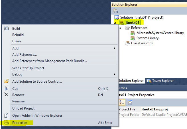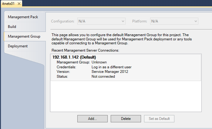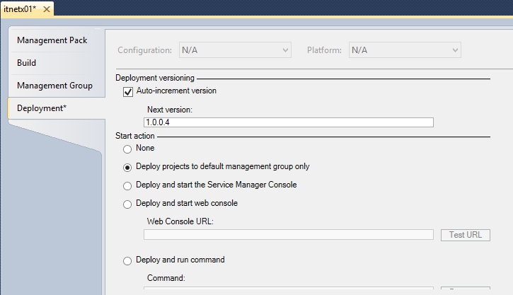Now as the class is ready it’s time to deploy the Management Pack to the Service Manager Management Group. This can be done directly from Visual Studio. Configure the properties of the project.