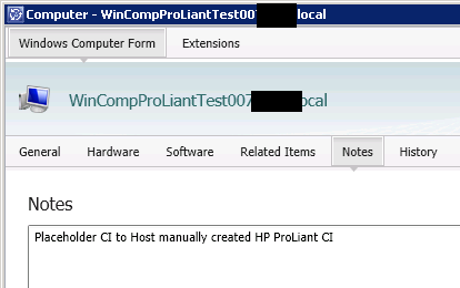 $notes = “Placeholder CI to Host manually created HP ProLiant CI”