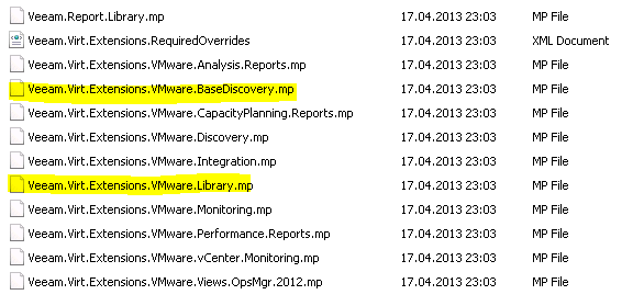 Now let’s talk about bringing over the objects to the CMDB (without taking care of the old MP versions). First of all we need to import the appropriate MPs from the Veeam MP V6 into Service Manager. I imported the following two MPs: