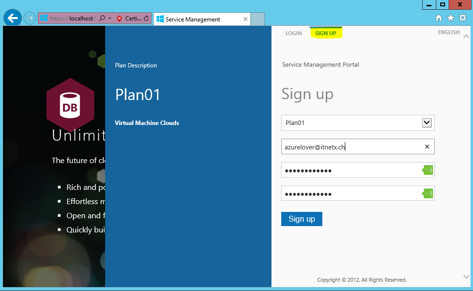 In this post I’d like to focus more on the tenant objects and how they are managed. For this I will start with the sign up process on the Windows Azure Services portal to create a new tenant.