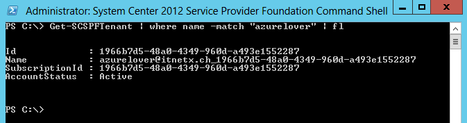 So the initial registration is done. But what happened in the background when the tenant was created? First, a new tenant was created in SPF. This can be checked by using the SPFAdmin PowerShell module available on the SPF server.