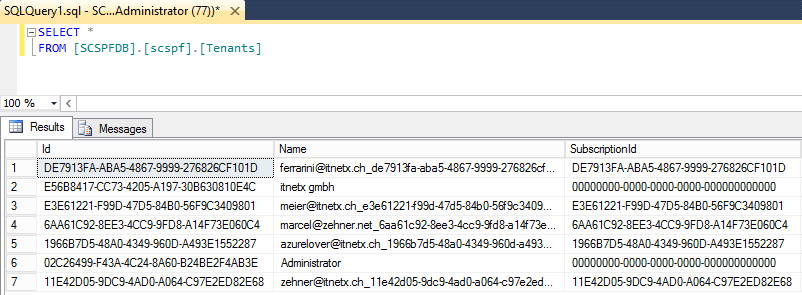 This tenant lives in the SPF SQL database. This can also be checked by checking the tenant table in the database. It displays more or less the same information as the cmdlet.