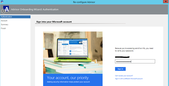 Use a Microsoft or organizational account to sign in to the OpInsight subscription.