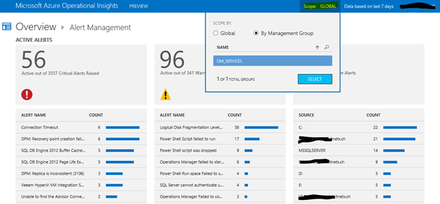 In case you have multiple SCOM management groups attached you can select from which one you want to display information. One, multiple or all can be selected here.