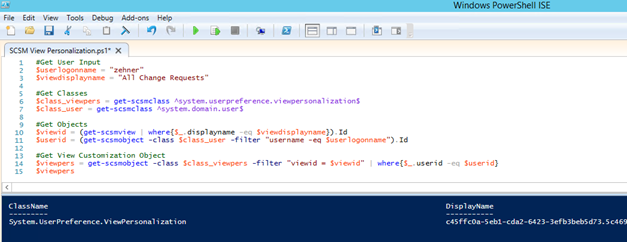 Every personalization of an analysts for a specific view is stored in the SCSM database. The personalization is represented in a personalization object. With this script that is based on the smlets PowerShell module you can get the personalization object of a view for a specific user.